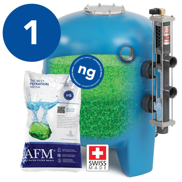 Prvi korak do najkvalitetnije bazenske vode je zamjena pijeska (ili bilo kojeg drugog punila iz vašeg filtera), sa AFM® Aktiviranim filterskim punilom. AFM® je inovativna zamjena za klasična filterska punila (npr. pijesak ili staklo) i višestruko nadmašuje njihove performanse. AFM® sprječava rast bakterija u vašem filteru, sprječava stvaranje štetnog mirisa na klor (trikloramini) i filtrira 50% više organskih tvari od drugih filterskih punila, za najbolju kvalitetu vode i zraka oko bazena. AFM® je certificiran za filtraciju svih čestica većih od 1 mikrona (0,001 mm), a njegovi rezultati filtracije uvjerljivo nadmašuju rezultate pijeska i drugih filterskih punila (nezavisno testirao najpoznatiji europski laboratorij za filtraciju vode IFTS). AFM® sprječava razvoj bakterija u filteru zbog čega je životni vijek AFM®-a više od 20 godina, za razliku od pijeska čiji je životni vijek 5 do 7 godina.
