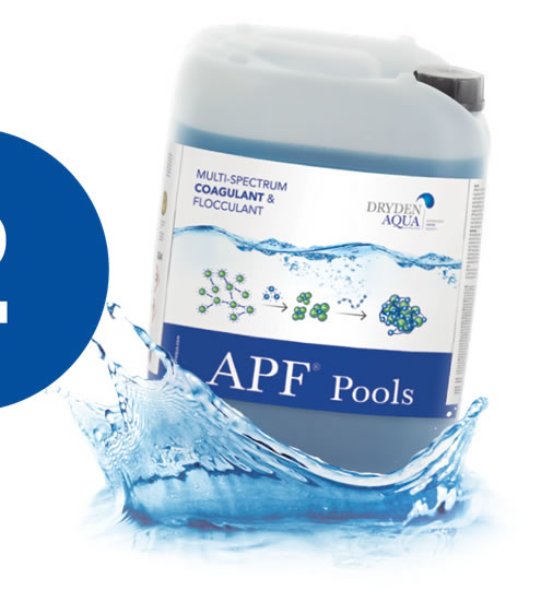 Drugi korak uključuje APF® koagulant i flokulant, koji uklanja otopljene nečistoće i fosfate iz bazenske vode, vitalnu hranu za rast bakterija i algi. Za razliku od algicida koji ubijaju alge, APF® uklanja vitalne hranjive tvari koje su potrebne za rast algi i time sprječava njihov razvoj u bazenu - bez hrane nema života! Kada se APF® koristi u kombinaciji sa AFM®-om, filtriraju se sve čestice veće od 0,1 mikrona (0,0001 mm), što je nedostižno za bilo koje drugo punilo.