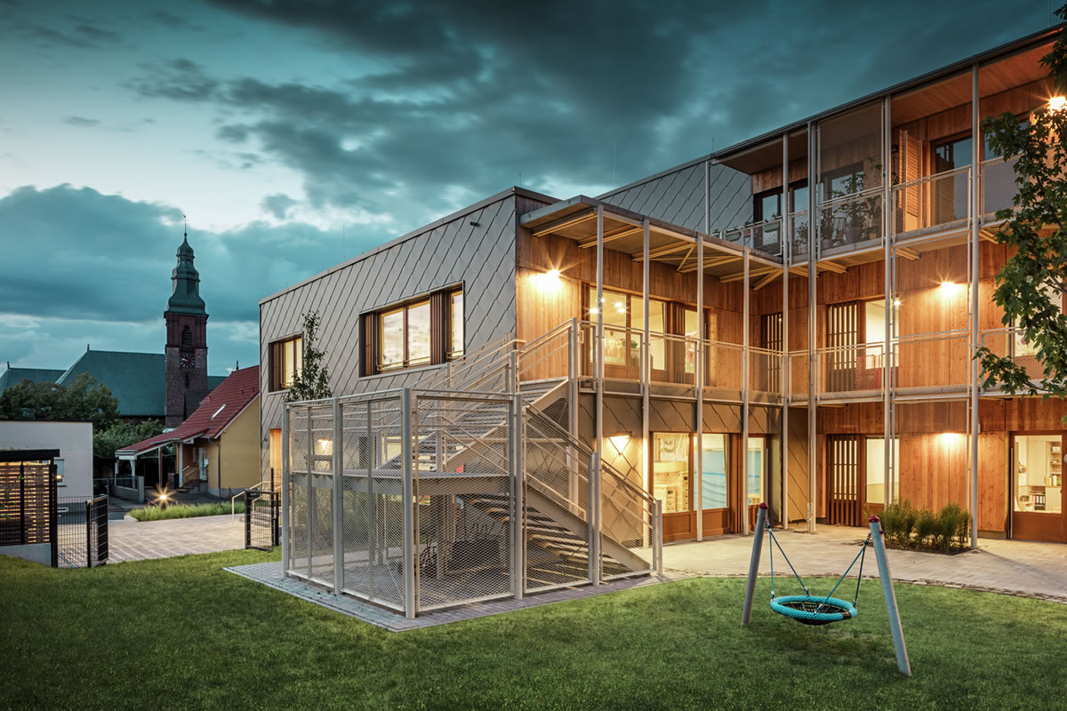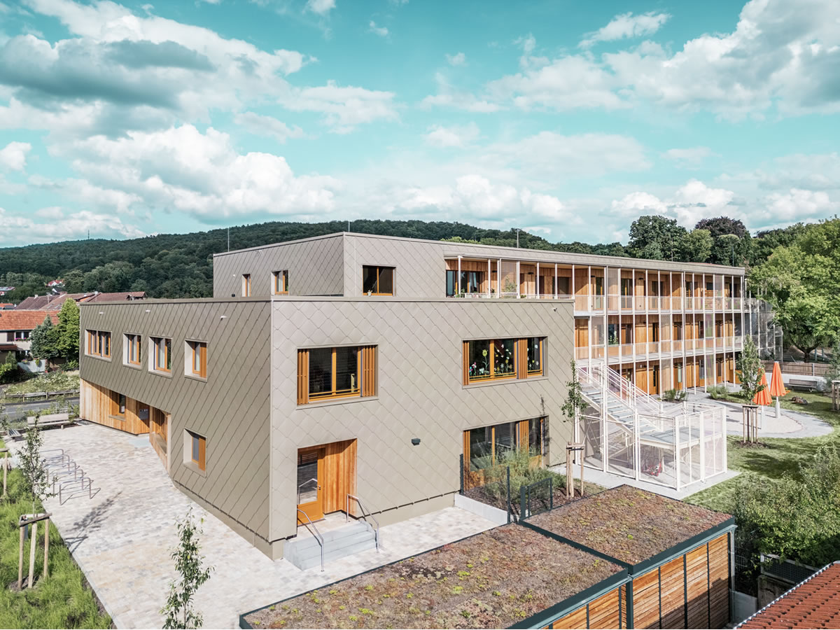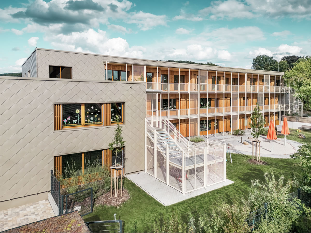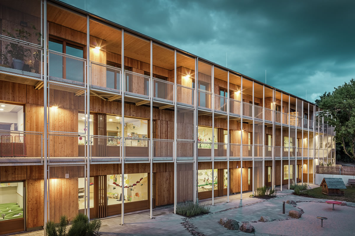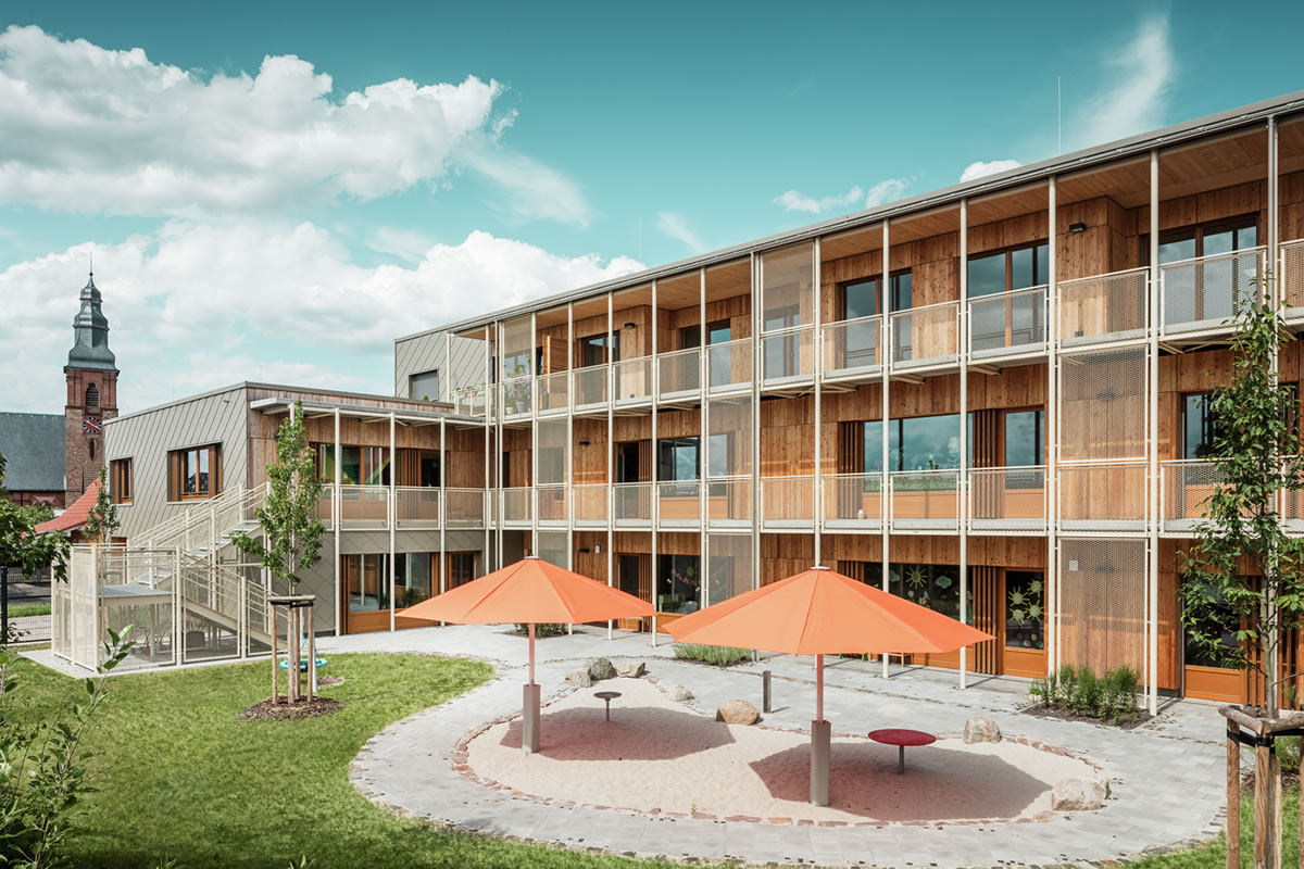 Nova dječja ustanova trebala je pružiti ne samo prilagođen prostor za susrete najmlađih, već i adekvatan stambeni prostor za zaposlenike obližnje bolnice. „Smatramo da je dobro kada se kombinira više funkcija, no često se pravila financiranja, postupci dodjele i očekivanja lokalnih donositelja odluka pokažu kao uporni izazovi“, kažu Theo i Claudia Härtner. Takav izazov savršeno odgovara ovom arhitektonskom paru, jer su oni specijalizirani ne samo za izgradnju dječjih vrtića, osnovnih škola i obrazovnih institucija, već i za rješenjski orijentiran dijalog i suradnju s odgovornim tijelima.