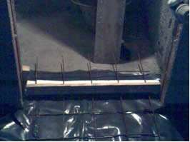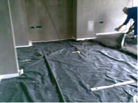Kao zaštita se preko svega postavlja građevinski najlon odnosno PVC folija. Nakon tako pripremljenih podsloja krećemo u postavljanje estriha. U optimalnim uvjetima mikroklime prostora prohodnost poda moguća je nakon 24 sata. Nakon što je pod postao prohodan može se odrezati višak traka po obodu koje vire iznad kote gotove glazure. ({Slika 6.})